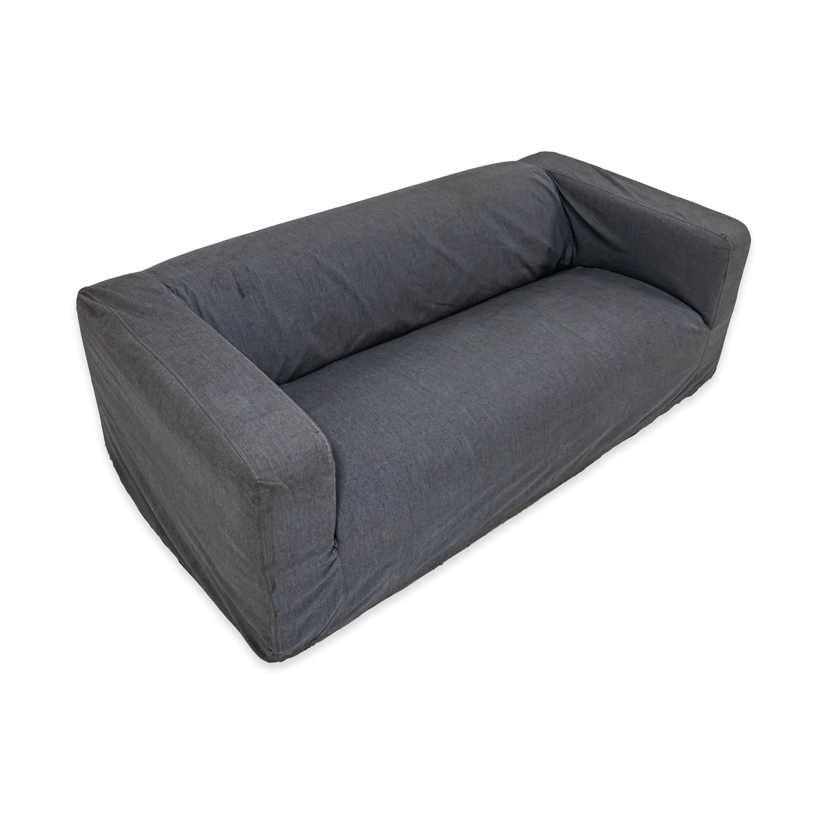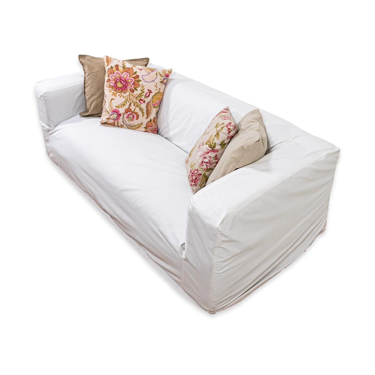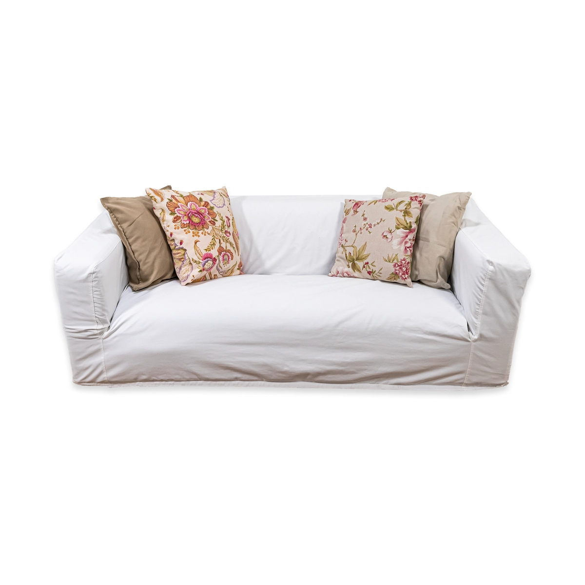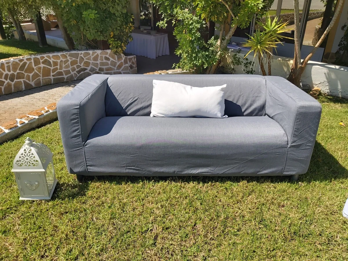 Sofá de 2 lugares forrado a tecido. Permite oferecer às pessoas um lugar em que se sintam mais confortáveis.