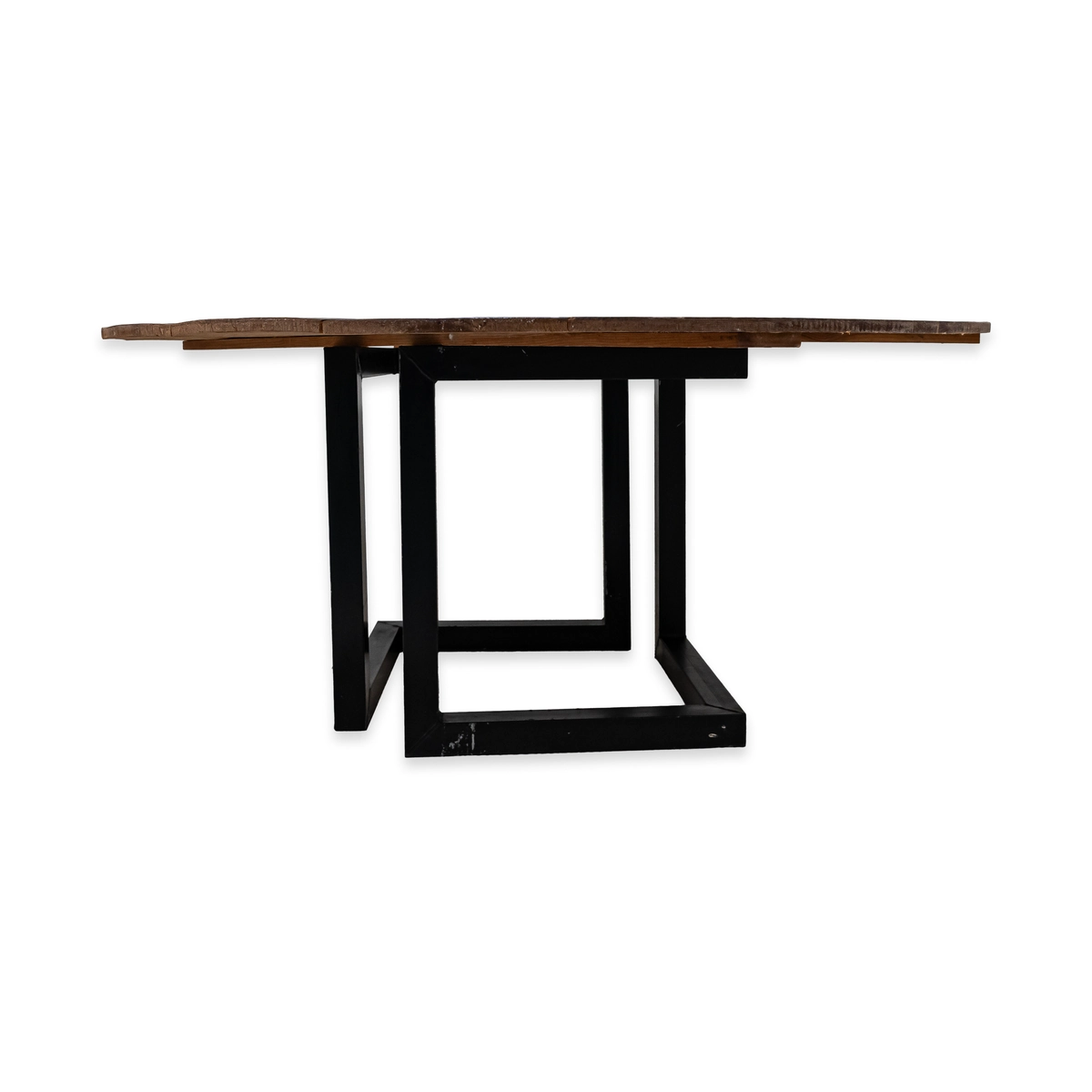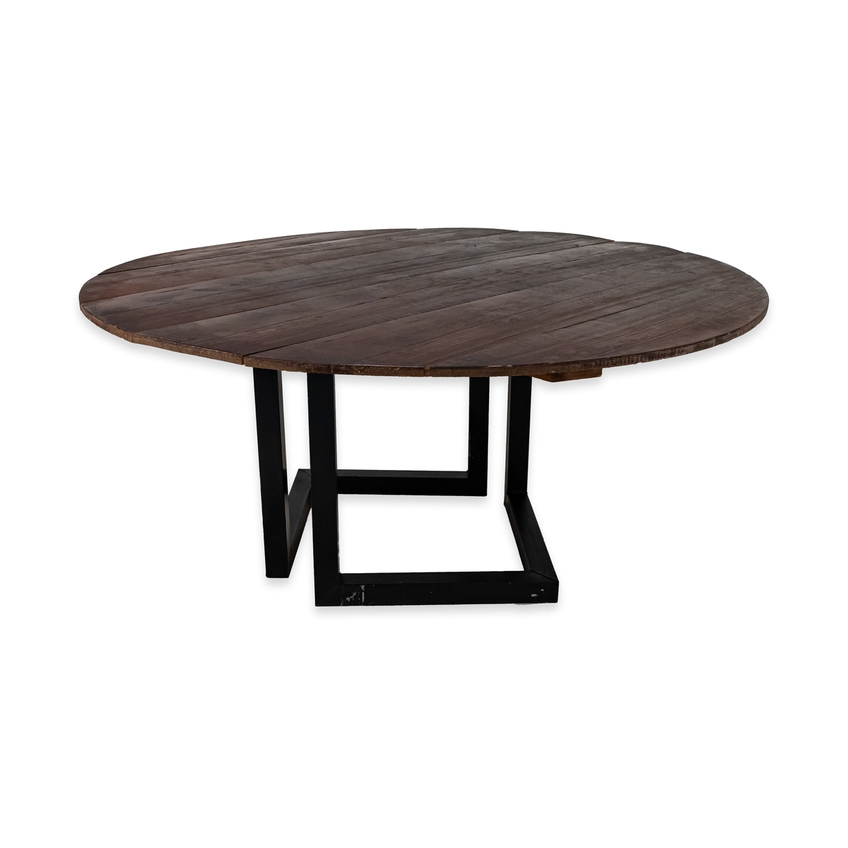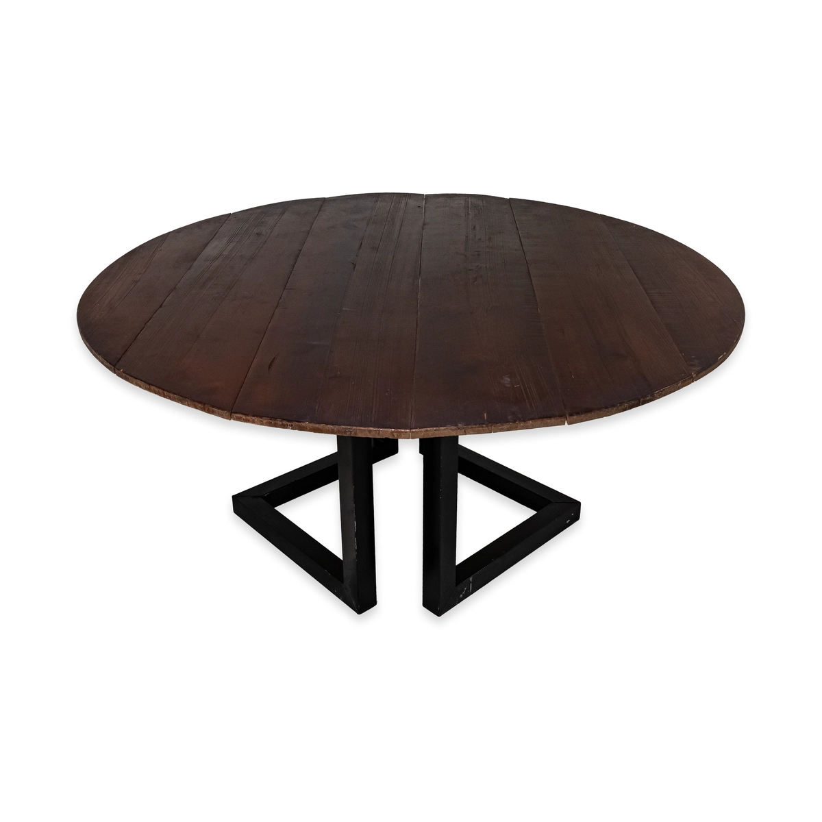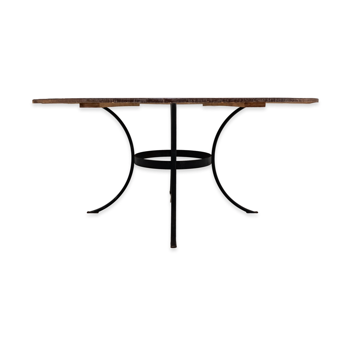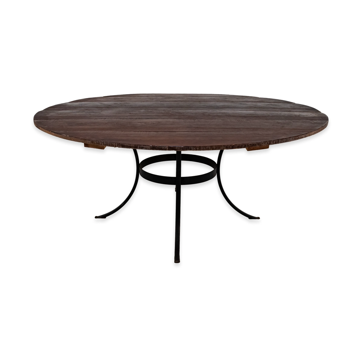 Mesa Redonda rústica. Esta mesa tem tampo em madeira que pode ser combinado com cavalete em madeira ou em ferro com vários designs.